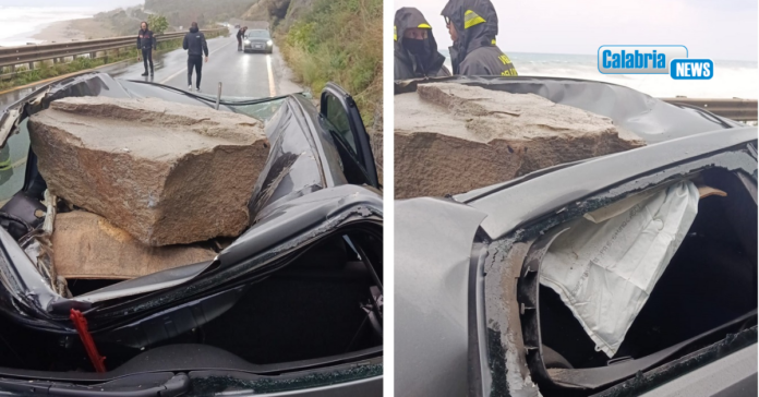 Tragedia sfiorata a causa del maltempo. Dei massi staccatasi da un costone proprio a causa delle forti piogge sono precipitati su un’auto in transito nel reggino. Fortunatamente il conducente è rimasto solo lievemente contuso.