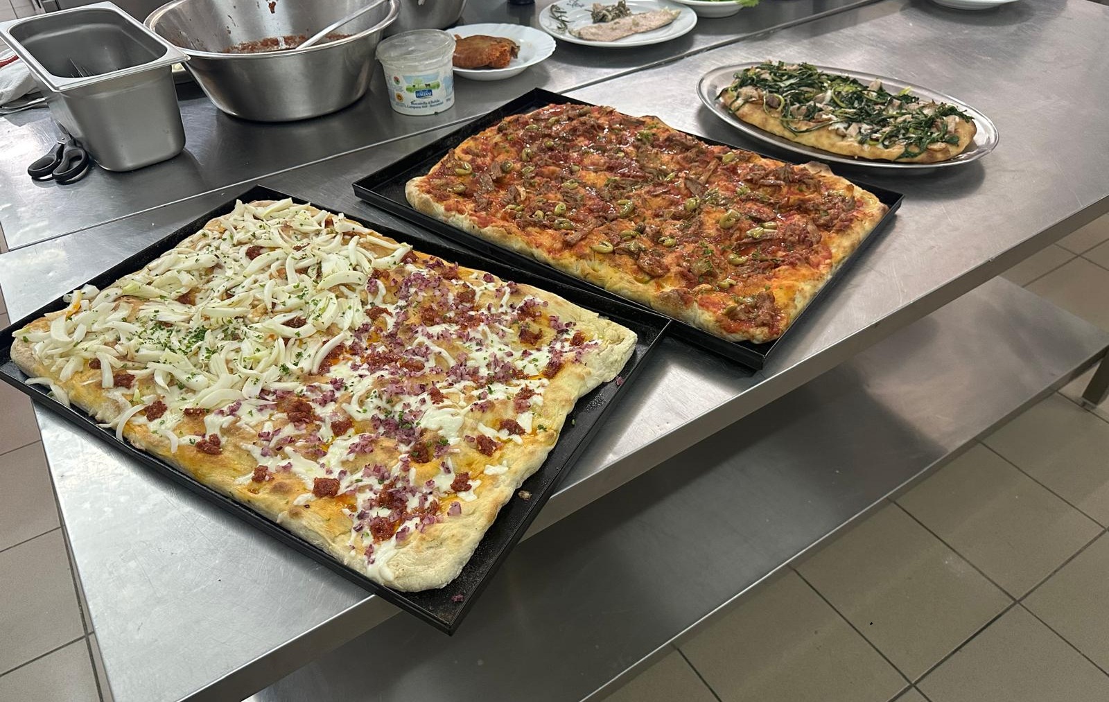 Nella seconda giornata gli studenti, invece, hanno preparato direttamente l’impasto seguendo le indicazioni del maestro pizzaiolo, approfondendo aspetti tecnici come elasticità dell’impasto, resistenza delle farine e presenza di proteine. L’impasto è stato poi steso e condito con i diversi ingredienti, dando vita a circa dieci varianti di pizza. Durante la cottura gli studenti hanno osservato da vicino le trasformazioni dell’impasto, analizzando la formazione delle bolle e la struttura finale della pizza. La fase conclusiva è stata dedicata all’assaggio e all’analisi del prodotto sfornato, passaggio fondamentale per comprendere l’equilibrio tra ingredienti, impasto e tecnica di cottura. Le pizze che vengono consumate dagli studenti nel bar didattico della scuola trasformano l’esperienza formativa in un momento di condivisione e verifica delle tecniche apprese. Per gli studenti dell’indirizzo Cucina si è trattato non solo di migliorare le competenze legate alla preparazione della pizza, ma anche di approfondire la specializzazione nella pizza in teglia, oggi sempre più richiesta nel settore della ristorazione.