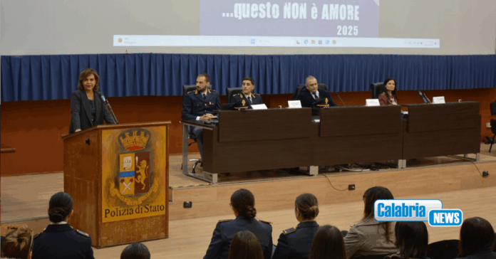 Nell’ambito delle iniziative portate avanti dalla Polizia di Stato per la campagna nazionale contro la violenza di genere “Questo non è amore” si è svolta oggi presso la Scuola Allievi Agenti della Polizia di Stato un incontro – dibattito inerente la tematica della violenza contro le donne, incontro fortemente voluto dal Questore della Provincia di Vibo Valentia, Rodolfo Ruperti. La giornata, che si è svolta alla presenza del Prefetto, del Direttore della Scuola, dei rappresentanti delle atre Forze dell’Ordine, dei Sindacati di Polizia, è stata, infatti, pensata ed organizzata con il preciso intento di sensibilizzare i giovani studenti presenti su un tema così importante. All’apertura dei lavori, dopo un breve saluto del Direttore della Scuola e del Prefetto, il Questore ha fatto precedere il suo intervento alla proiezione di un breve video sul tema e poi ha posto in evidenza le azioni messe in campo dalla Polizia di Stato e, nello specifico, dalla Questura nelle sue diverse articolazioni, per contrastare il fenomeno della violenza contro le donne. Successivamente, ha lasciato la parola ai funzionari di P.S. intervenuti e agli altri relatori.